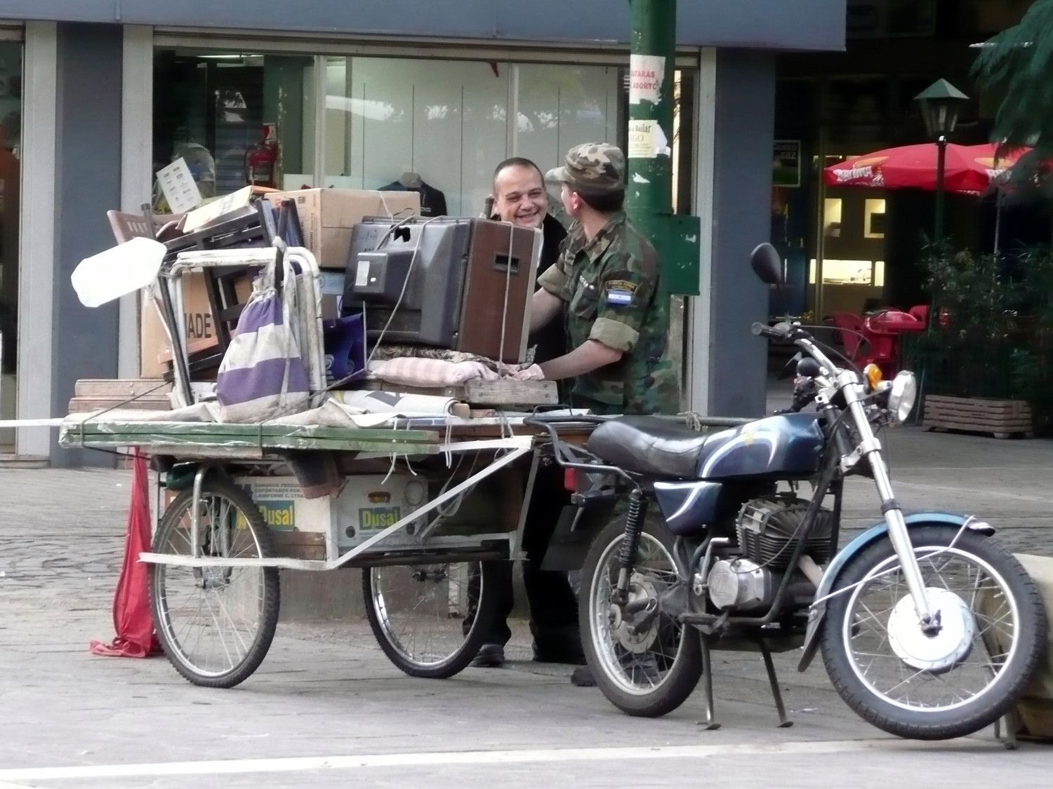 ![]() 3 Là, ce ne sont point de livides serpillières qui sèchent au soleil aux balcons des résidences du quartier estudiantin de Nueva Córdoba, mais bien d'authentiques étendards nationaux hâtivement jetés sur les balustrades. |