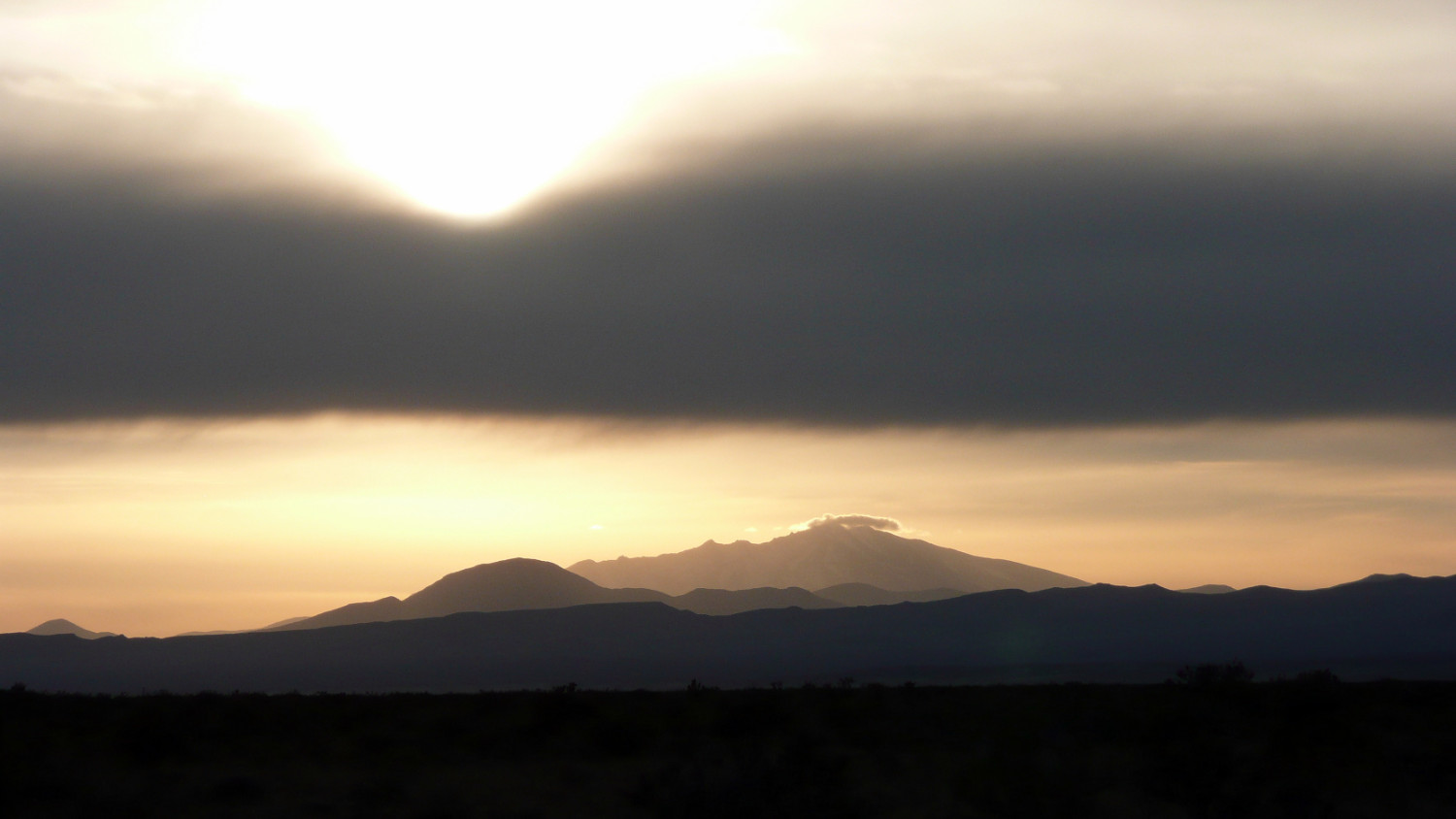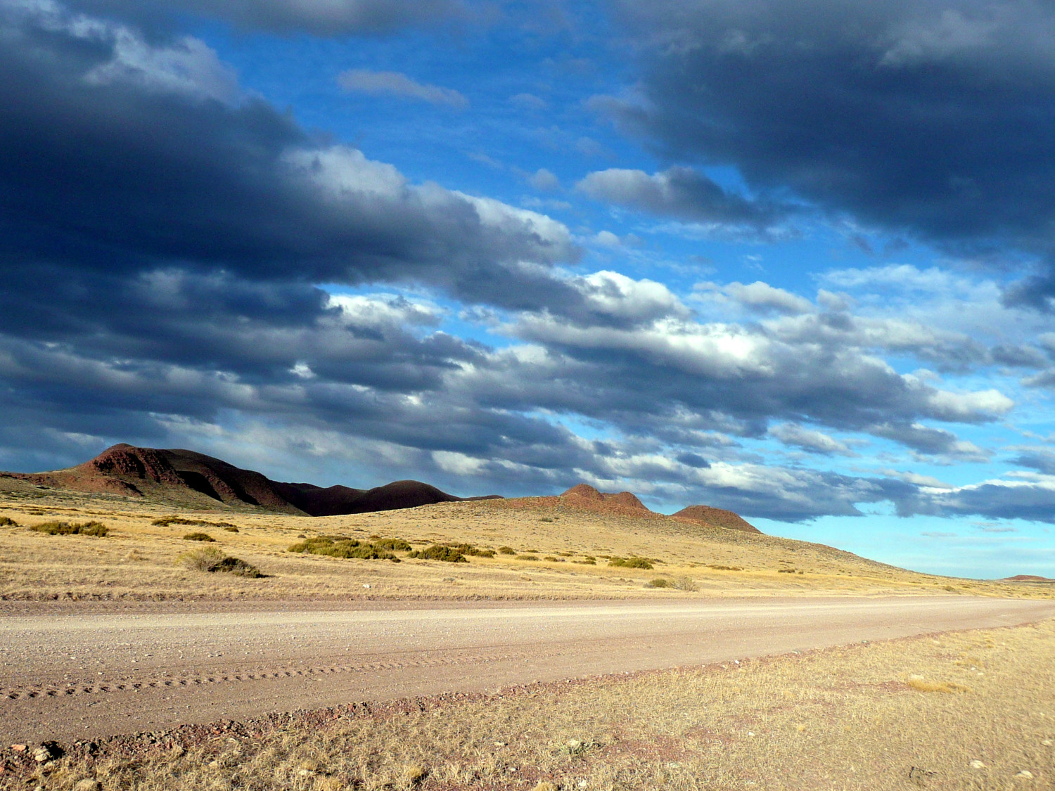 ![]() 40 Puis nous nous en retournons vers Kiñe, prenant un temps le commode Copito en guise de ligne de mire, petit pustule enflammé. Après la caillasse instable de la Pampa Negra, la piste consolidée est bonne et nous filons grand train. |